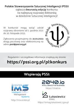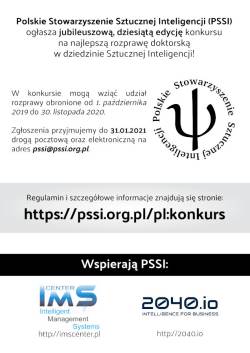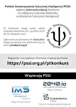 Z inicjatywy Prof. Stana Matwina, PSSI ogłasza konkurs na najlepszą rozprawę doktorską w dziedzinie Sztucznej Inteligencji.