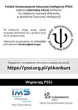 Nagroda PSSI w Konkursie na Najlepszą Polską Pracę Doktorską ze Sztucznej Inteligencji w r. 2024: