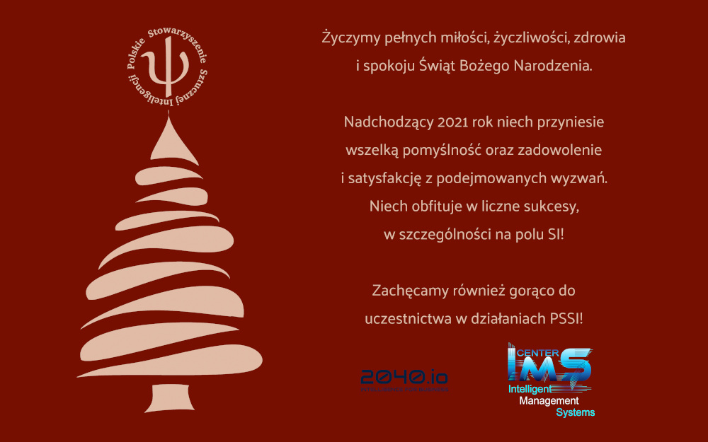 Z okazji Świąt Bożego Narodzenia oraz Nowego 2011 roku składamy Państwu serdeczne życzenia wszelkiej pomyślności w życiu osobistym, zadowolenia z pracy naukowej i podjętych wyzwań, w szczególności sukcesów na polu Sztucznej Inteligencji.